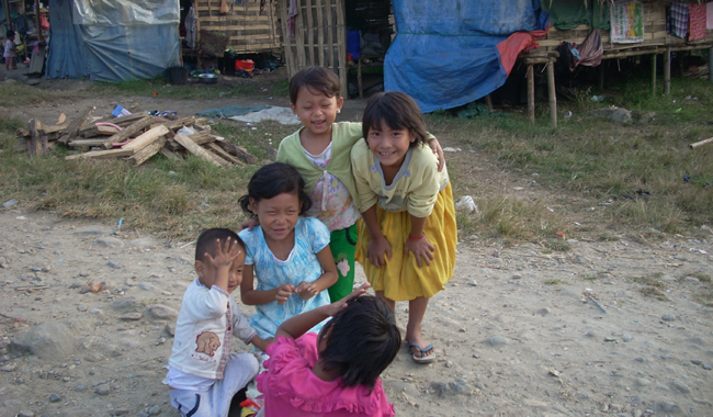 Jeyang Hka camp, where thousands of IDPs live three families per tarp-roofed bamboo house.