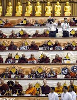 For the junta, the summit’s religious nature appears to outweigh any political significance, and junta leaders at the meeting have made little mention of In an address to the opening session, for instance, Sr-Gen Than Shwe kept to religious themes, saying “the timeless teaching of Lord Buddha is very relevant and essential to save humanity (from) craving, desire and suffering.” In today’s times, he said, “the world is witnessing numerous conflicts and crimes. All those evils result from greed (lobha), anger (dosa) and delusion (moha). We should rid the world of the roots of all evils and sow the seeds of goodwill, tolerance, kindness and altruism for the sake of peace and prosperity.” Than Shwe recommended the Lord Buddha’s fourfold message of loving kindness (metta), compassion (karuna), joy and equanimity (upekkha). They were the best path for humanity to “peace and harmony.” In contrast, Than Shwe told visiting Thai Prime Minister Thaksin Shinawatra yesterday that his government is not ready to release opposition leader Aung San Suu Kyi. Thaksin said the junta chairman had told him in private talks that Suu Kyi could not be released because on three previous occasions when she had been freed from detention “difficulties” had arisen. Prime Minister Soe Win also prompted controversy in his own speech to the meeting, by saying: “ Some Burmese Buddhist scholars reacted to this quickly. Khin Maung Soe, a Burmese writer who studied Buddhism told The Irrawaddy that during the time of Buddha there was no 1 | 2