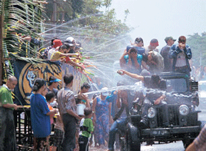 But Thingyan is not just for the young. Burma’s “old man” Than Shwe, the junta chief, and his aging gang also seem quite happy. At the end of April, their official salaries will rise ten-fold. Some reports suggest that the general’s paycheck will be somewhere in the neighborhood of 1,200,000 kyat (US $890). The government-subsidized water festival has in past years brought the capital of Rangoon alive in a way that doesn’t happen at any other time of the year. Ethnic dance performances and concerts by popular singers are only a few of the many events held during the festival. In light of the government’s costly move to Naypyidaw, skeptics are saying that the junta will reduce spending on this year’s event to recoup the enormous cost of building Naypyidaw. According to Burmese Buddhist tradition, the Celestial King—Thagyamin—descends to Earth when the New Year festival begins to reward people according to their deeds during the past year. Burmese believe Thagyamin keeps two books—one made of dog skin for those who do evil, and the other embossed in gold for those who commit good deeds. A running joke spreading widely in Rangoon is that Thagyamin may cancel his trip this year after learning that the junta has arranged to buy Russian-made air defense systems. Thingyan is a national and religious holiday, during which Burmese take time out to have fun, perform acts that will earn them merit, and relax from the cares of their daily lives. It is also a time for citizens to reflect on the future of their country and the hopes they hold dear for themselves and their children. This year’s festival holds a greater significance. In an unprecedented attempt to reach out to Burma’s military government, the opposition party National League for Democracy proposed reconvening the people’s parliament—comprising winners of the aborted 1990 elections—in return for acknowledging the junta as Burma’s de jure government. The NLD requested a response by the beginning of the New Year. So far, the junta has officially remained silent. We are entering a New Year this week…but with the same old regime firmly entrenched. Hope will be hard to come by, but many hold tight to the belief that brighter days are ahead.